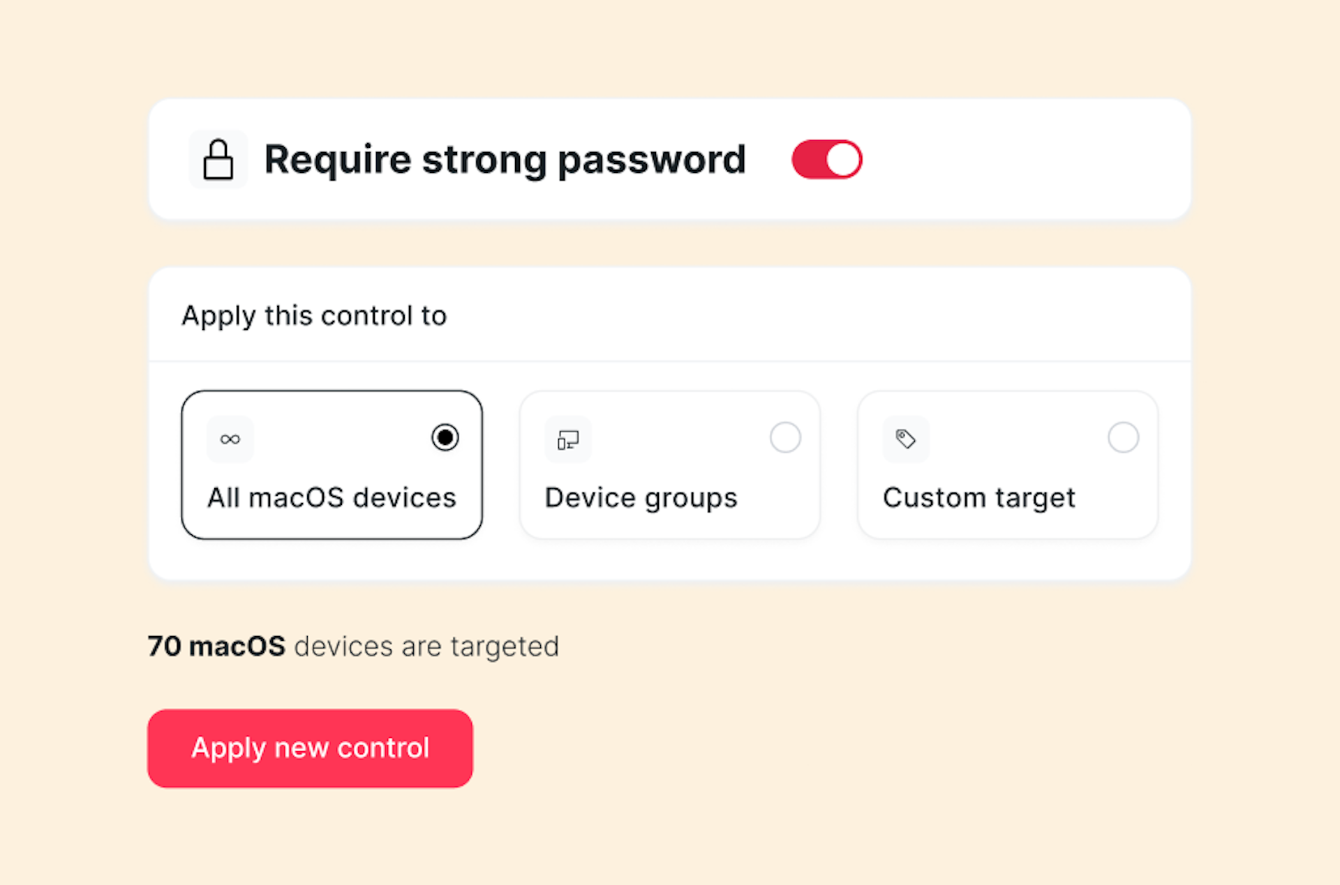 Enforce disk encryption, strong password policies, and OS updates across your entire device fleet to stay compliant with SOC 2, ISO, and GDPR.