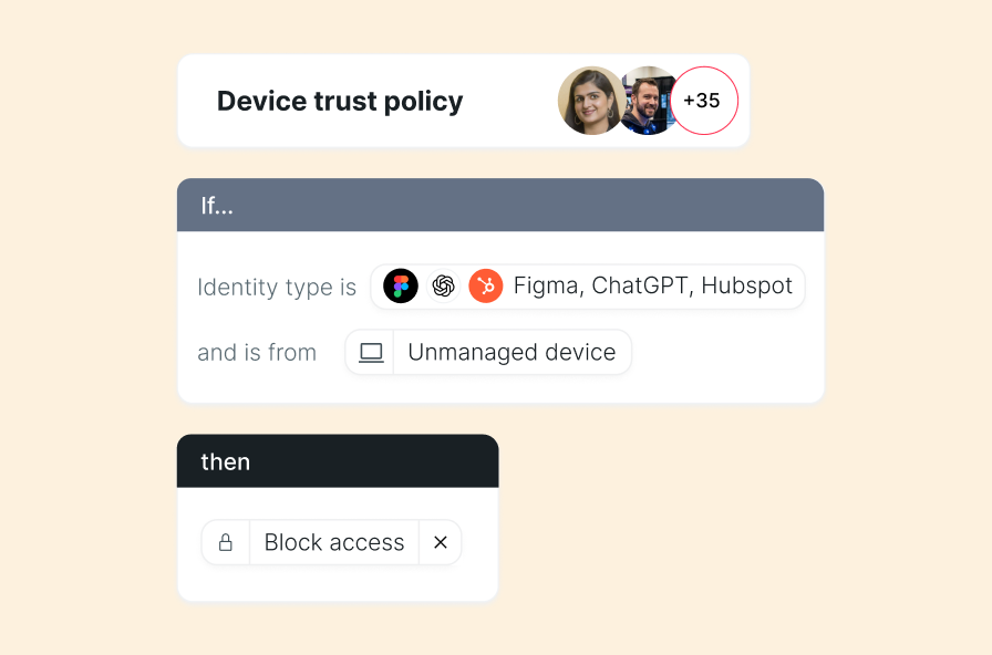 - Auto-apply policies by role, team, OS, or security status — and keep them updated when people change teams or leave.